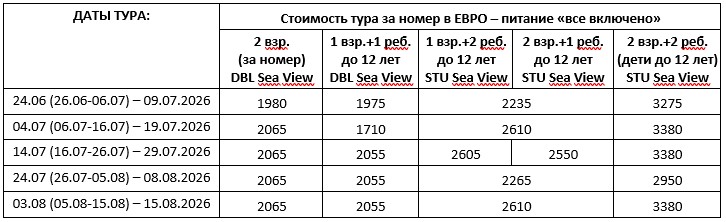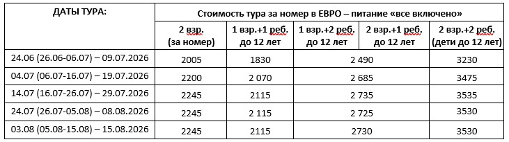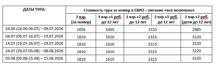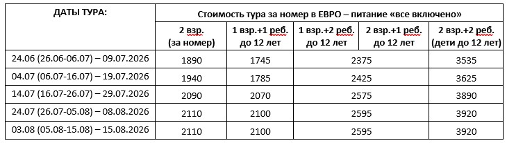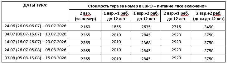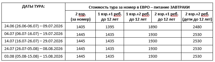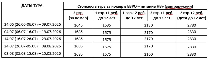 1. *Актуальное наличие мест в отелях необходимо уточнять у менеджеров компании перед бронированием!